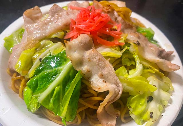 ジンギスカンたれ焼きそば、光るボトルカップジュース