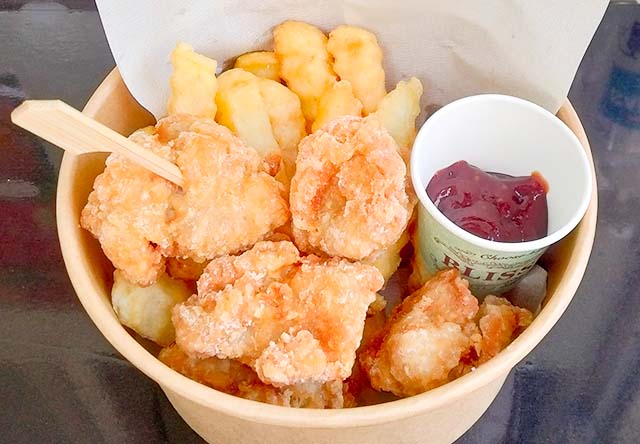 チキンステーキ、厚切りベーコン、やきとり、焼きそば、たこやき、ザンギ、たこ焼き、フライドポテト