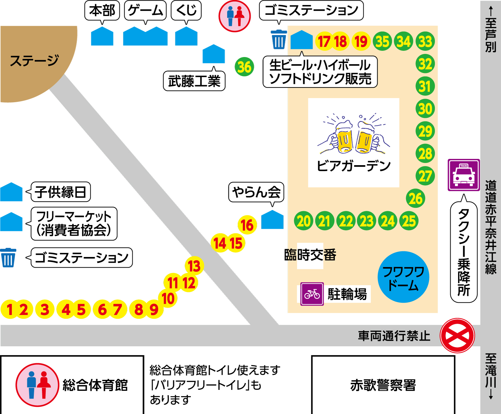 ※安全管理上、テーブル·クーラーボックスの会場内の持込み、ご使用はご遠慮願います。